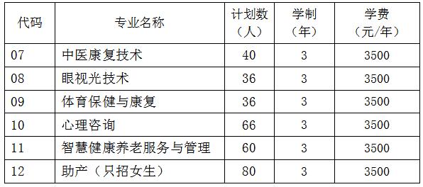 2.性别要求:助产(专科)专业限招女生,其他专业无男、女比例限制。