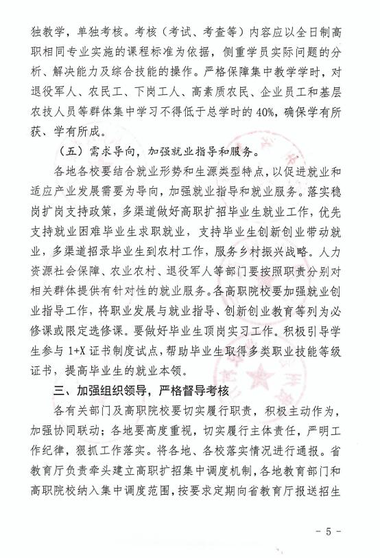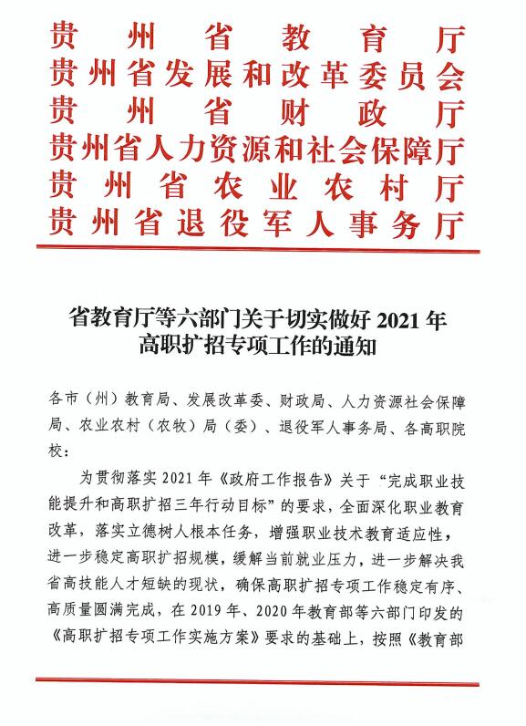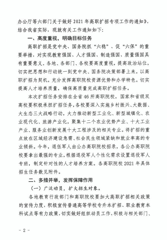 省教育厅等六部门关于切实做好2021年高职扩招专项的通知