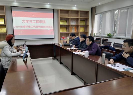 12月23日下午,力学与工程学院学生工作组2019年度述职暨学院2019年度学生工作优秀案例评选会在X2218会议室举行。学院党委书记栗民,党委副书记孔祥彬,副院长阚前华,班导师代表、教师代表张旭、刘娟、苗鸿臣以及学生工作组杨婧、张英蓉、张容华、胡持、向金兰、周子涵参加了本次会议。会议由孔祥彬副书记主持。