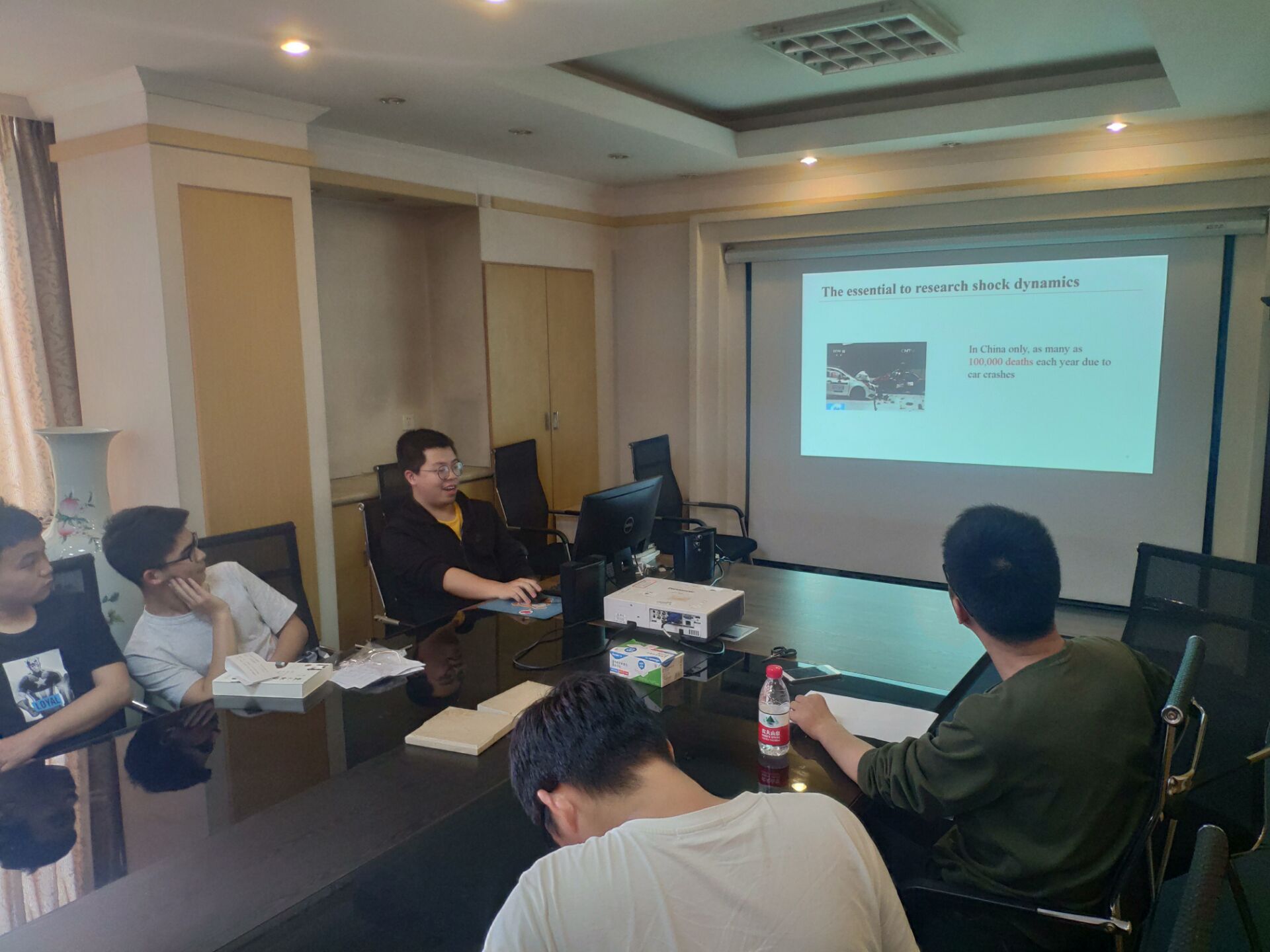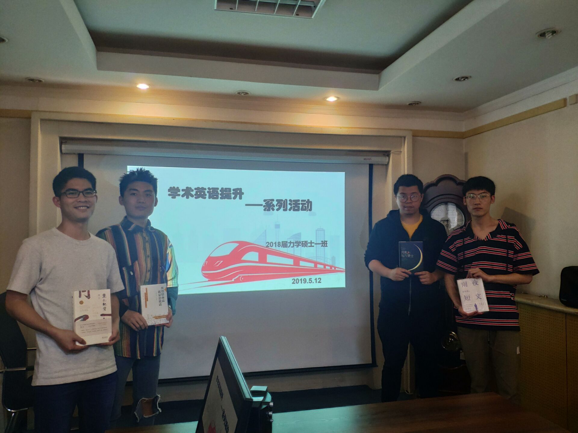 首先来自朱志武教授课题组的唐伟然同学为大家做出了冲击动力学的报告,为大家生动的讲解了子弹撞击的力学响应,并用流利的英文回答了同学们对于冲击试验设备的提问。接着,来自高芳清教授课题组的丁凯文同学结合自己的课题方向,讲述了振动测试的一系列仪器以及使用流程。两位同学流利的英文,自信而生动的表达展现了自己的学术英语素养,也得到了现场同学的认可,现场向这两名同学颁发经典阅读书籍作为鼓励。