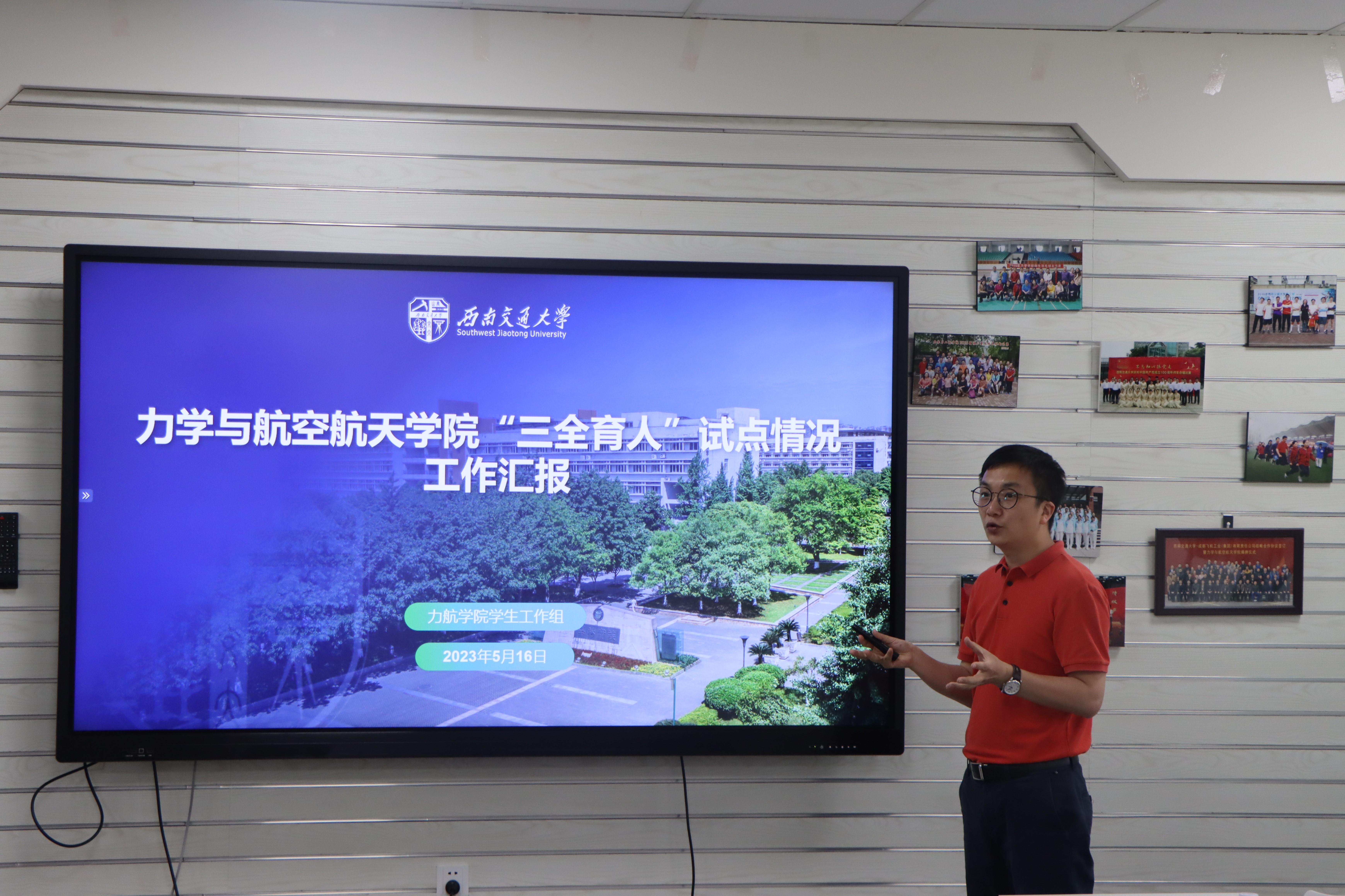 随后,孔祥彬就交大万象城娱乐awc线路四川省“三全育人”试点院系建设情况进行汇报。姜利寒给与高度评价,认为交大万象城娱乐awc线路“三全育人”工作扎实有效,而且可复制、可推广,在全国范围都产生了较好的示范作用,值得学院学习借鉴。