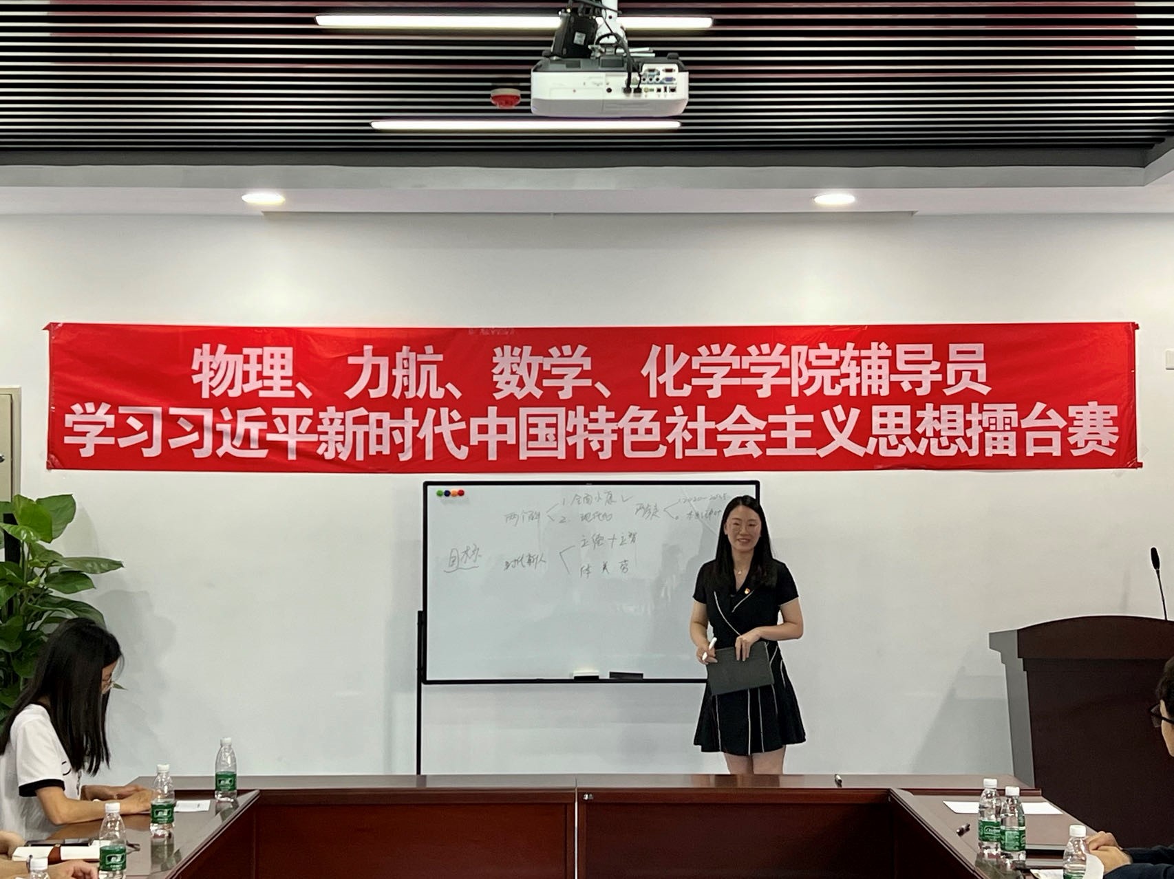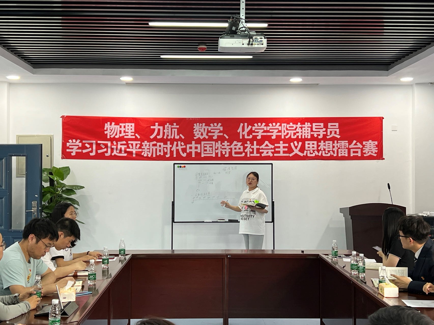 5月17日下午,物理力航数学化学学院辅导员“原原本本学思想”擂台赛第二场在九里校区工业中心C座203会议室举行。物理学院党委副书记郭剑、万象城娱乐awc线路党委副书记孔祥彬、数学学院党委副书记黄祥、化学学院党委副书记张春燕以及四个学院全体辅导员参加了擂台赛,本次活动由万象城娱乐awc线路辅导员杨婧主持。