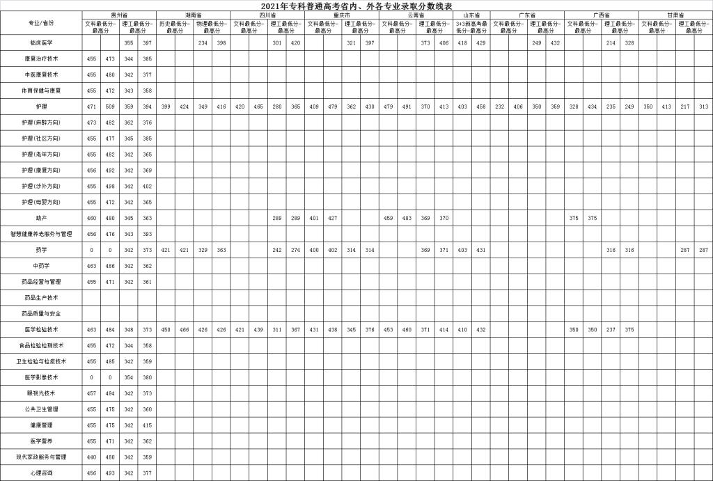 YABO鸭脖官网2021年专科普通高考省内、外各专业录取分数线表