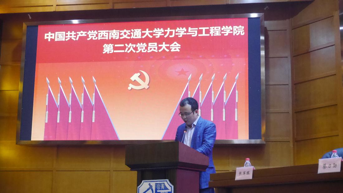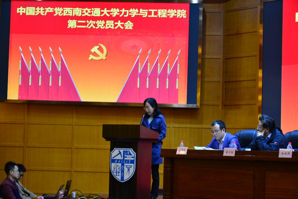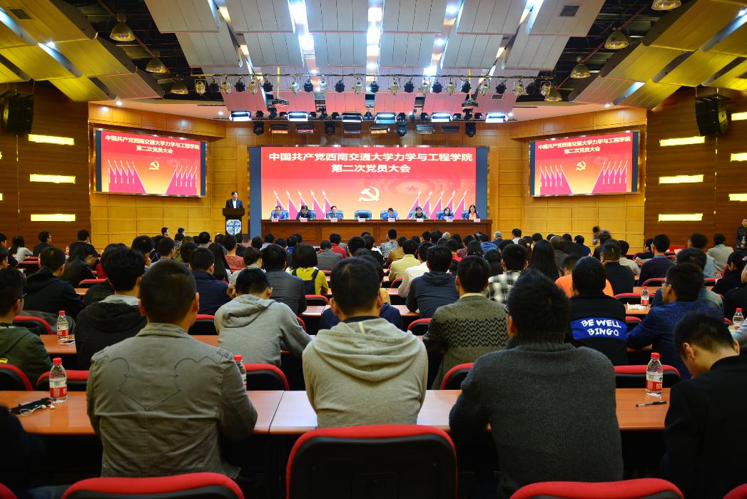 2016年10月27日下午,中共万象城娱乐awc线路力学与工程学院第二次党员大会在九里校区国际会议厅顺利举行,学院全体党员参加了此次大会。校党委常委沈火明教授、党委组织部副部长(主持工作)韩旭东同志、组织部组织科副科长(主持工作)王婉同志出席此次大会,学院第一届委员会委员在会议厅主席台就座。大会由力学与工程学院党委委员、纪委书记、学工组组长张军琪同志主持。