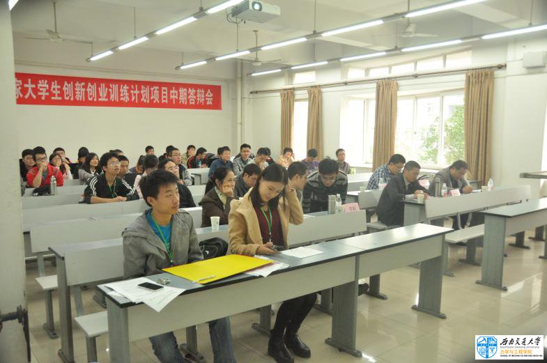 2013年10月31日下午2:00,万象城官网2013年“国家创新创业训练计划”项目中期检查答辩会在一号教学楼多媒体教室顺利举行。本次答辩会由教务处主办,大学生科创俱乐部承办,来自各学院的79个项目参加了答辩,赵人达、廖海黎、朱德贵、赵舵、鲁雄、李毅等56位项目指导教师组成的评委组出席了本次答辩会。