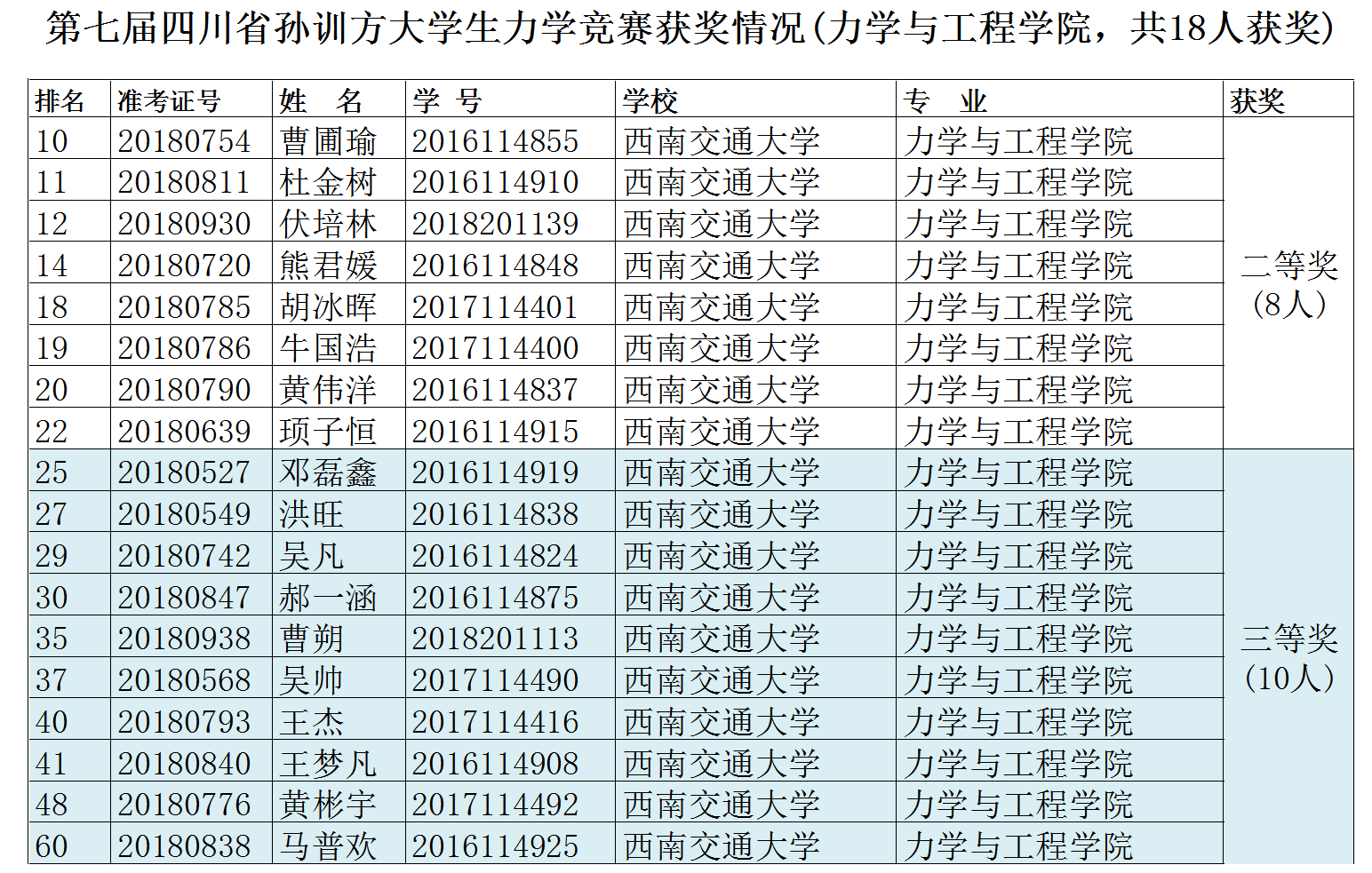 竞赛从上午9点在各个考场准时开始,经过3个小时紧张有序的比赛,于12点整结束。竞赛期间四川省力学协会秘书长蒋晗教授、力学与工程学院金建明书记和学院副院长阚前华教授等巡视了各考场,考场秩序良好,未发现考生违纪现象。为尽快公布竞赛成绩,当天下午就组织各高校40多名教师进行了集中封闭阅卷。经过成绩排序,万象城娱乐awc线路获得一等奖4项、二等奖20项、三等奖42项的好成绩。其中,力学与工程学院共获得二等奖8项、三等奖10项,与上一届相比有明显提升,但一等奖仍未突破。