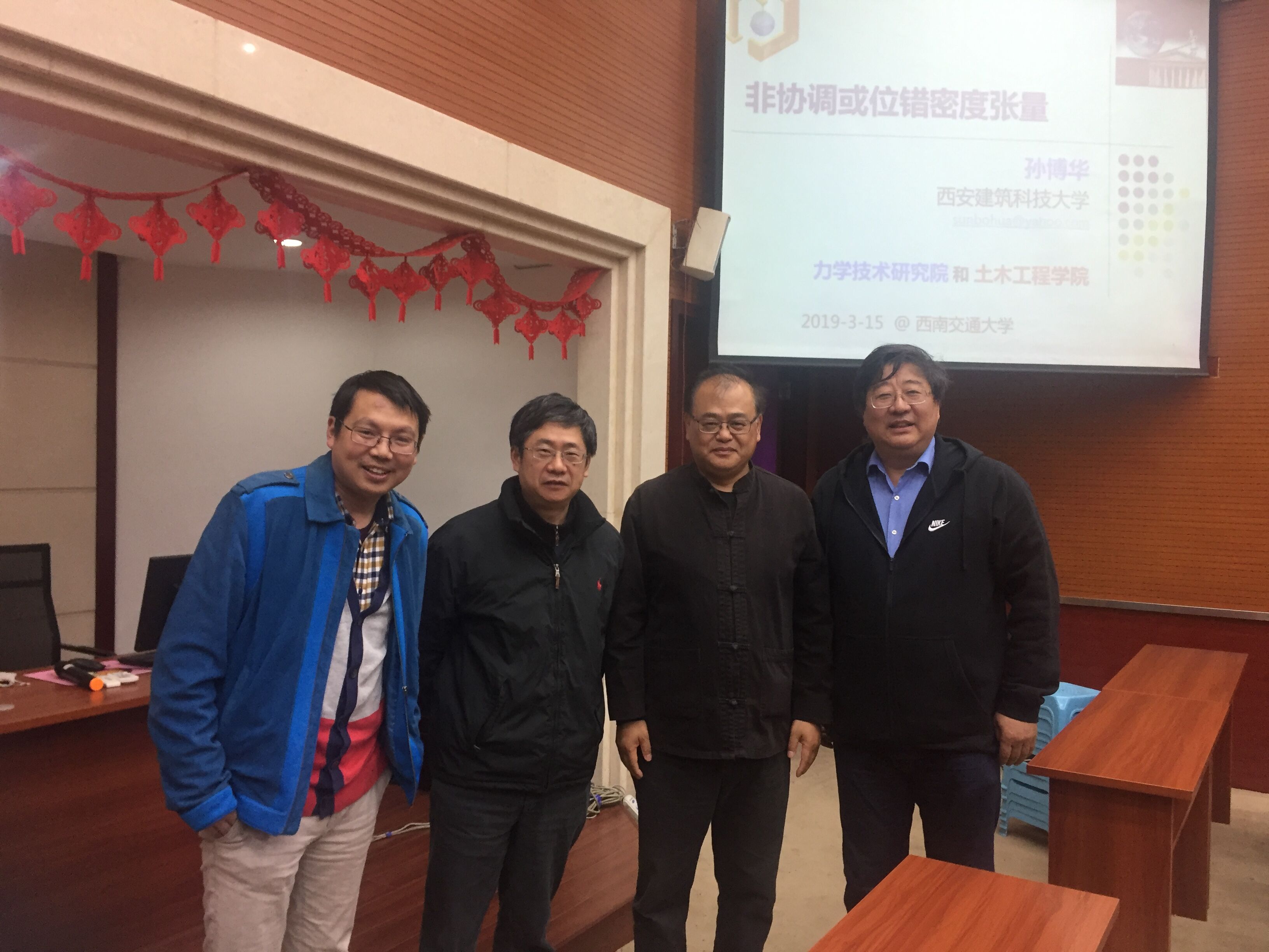 应蔡力勋教授的邀请,西安建筑科技大学孙博华教授,于2019年3月15日上午在万象城官网240学术会议厅作学术讲座,讲座题目为:非协调或位错密度张量。力学与工程学院领导、青年教师及研究生等60余人参加了本次学术报告。