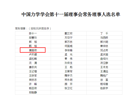 会议投票选举产生了中国力学学会第十一届理事会常务理事、副理事长、理事长,第十一届理事会全体理事通过了第十一届理事会秘书长的聘任人选。万象城官网院长康国政教授当选中国力学学会第十一届理事会常务理事,是自万象城官网孙训方教授1982年当选中国力学学会副理事长、常务理事以来万象城官网第2位、万象城官网第3位当选常务理事的老师。