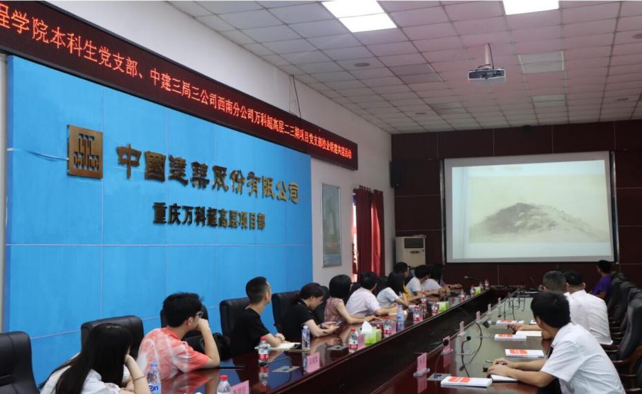 7月14日上午,实践队来到位于重庆市渝中区的中建三局三公司项目部进行座谈调研。座谈中,中建三局三公司西南分公司副总经理、项目经理王登科向实践队介绍了公司发展概况、已获佳绩、在建项目,并欢迎交大学子将来到中建实习、工作。参加座谈的还有分公司总经理助理、项目常务副经理张步月,项目副经理、钢结构专家田喜胜(西南交大2006级校友),项目技术总监冯吉,项目安全总监龙学军,人力资源部副经理杨杰,项目土建项目部杨鑫(西南交大13级校友),项目党务工作专员蔡渝洁等。