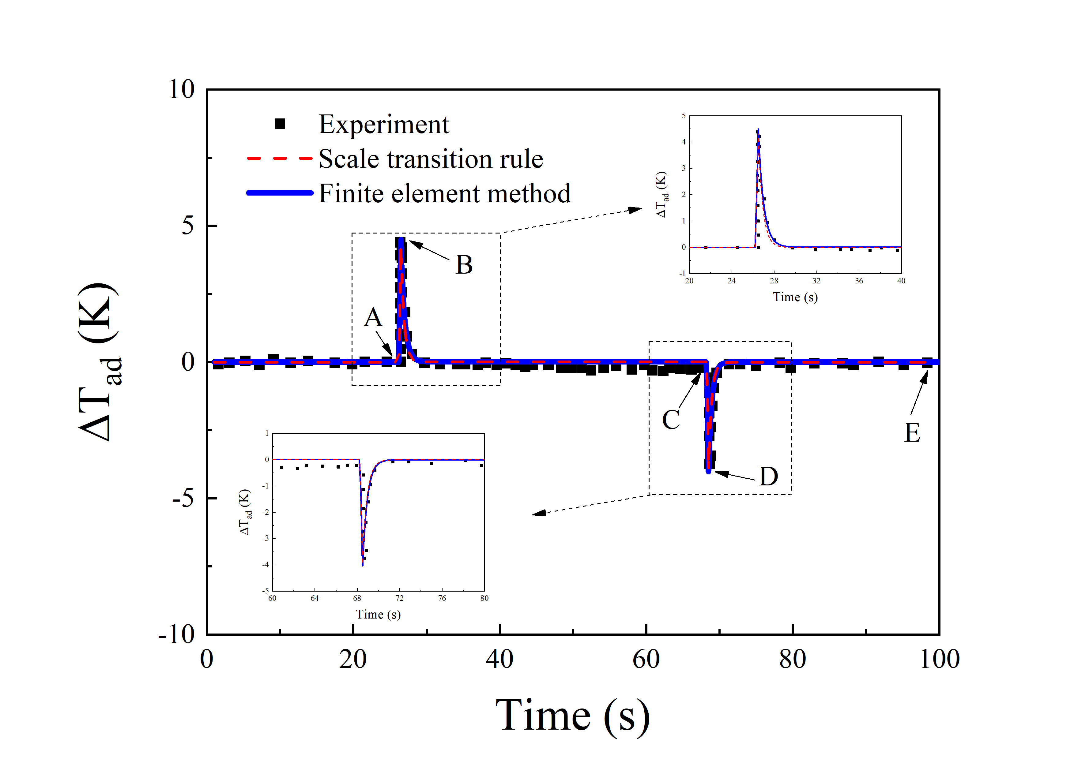 图2 双程形状记忆效应和弹卡效应的实验及理论模拟结果