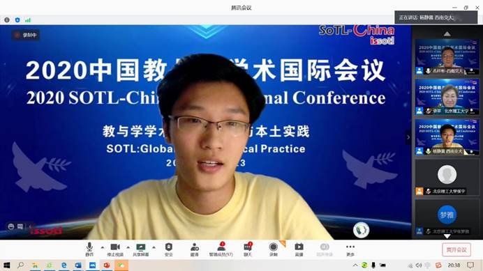 2020年8月21日至23日,由北京理工大学主办、国际教与学学术学会(ISSOTL)等协办的“2020中国教与学学术国际会议”(SoTL-China)在北京开幕。这是首次在中国举办的SoTL国际会议,安排了1个主会场、11场分论坛、9场研修坊及海报展示,来自中国、美国、加拿大等国的919位专家学者就国际视野下的教与学学术、中国高等教育中的教与学学术实践等议题展开学术交流,世界各地共7万余人次收看了大会直播。万象城官网党委副书记孔祥彬、2018级本科生杨静雷参加了会议并进行了精彩的分享,受到主办方和与会同行一致好评。