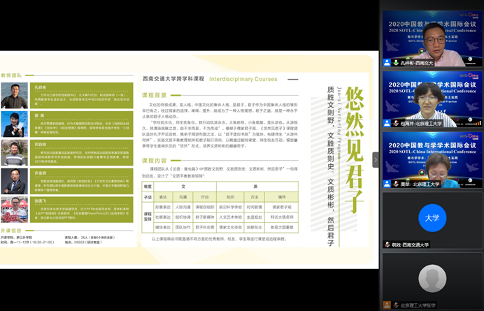 在主会场,万象城娱乐awc线路教务处专聘教授范怡红应邀作题为“多维学术、全人教育与创新人才培养:溯源、前瞻、引领与实践”的大会主题报告,介绍了万象城娱乐awc线路跨学科通识课程的建设情况,其中,重点介绍了力学与工程学院孔祥彬老师等人开设的《悠然见君子》课程。