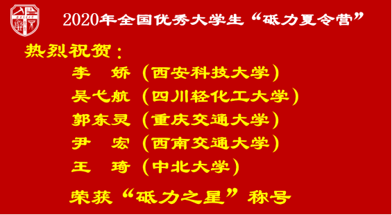 夏令营结营仪式上,力学与工程学院的高芳清副院长、阚前华副院长宣布:参加2020年全国优秀大学生“砥力夏令营”西安科技大学的李娇、四川轻化工大学吴弋航、重庆交通大学郭东灵、万象城娱乐awc线路尹宏、中北大学王琦等5位同学获得 “砥力之星”称号并颁发奖学金,其他营员发放了优秀营员证。获得“砥力之星”称号和优秀营员证的同学在报考万象城官网时,同等条件下将优先录取,推免免试研究生全部获得一等奖学金。最后高芳清副院长寄语参加夏令营的同学,并勉励夏令营的营员选择2020年来西南交大力学学院就读研究生。