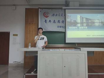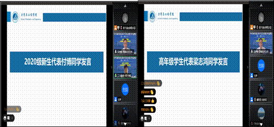 随后,高年级学生代表梁志鸿同学和新生代表付博同学分别发言。