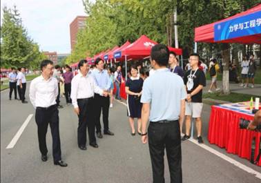 学校党委书记王顺洪、校长杨丹、党委副书记沈火明来到两个校区各学院迎新点,了解学院迎新情况,学院党委书记栗民、副书记孔祥彬详细介绍了力学学院本次的迎新工作安排以及2020级新生报到情况。校领导们对学院编写的学生课程学习经验汇编《力学秘笈》点赞。