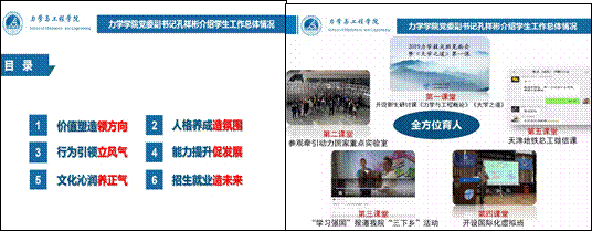 然后,学院党委副书记孔祥彬老师从价值、人格、行为、能力、文化和招生就业六大方面对学生工作情况进行了详细的介绍。