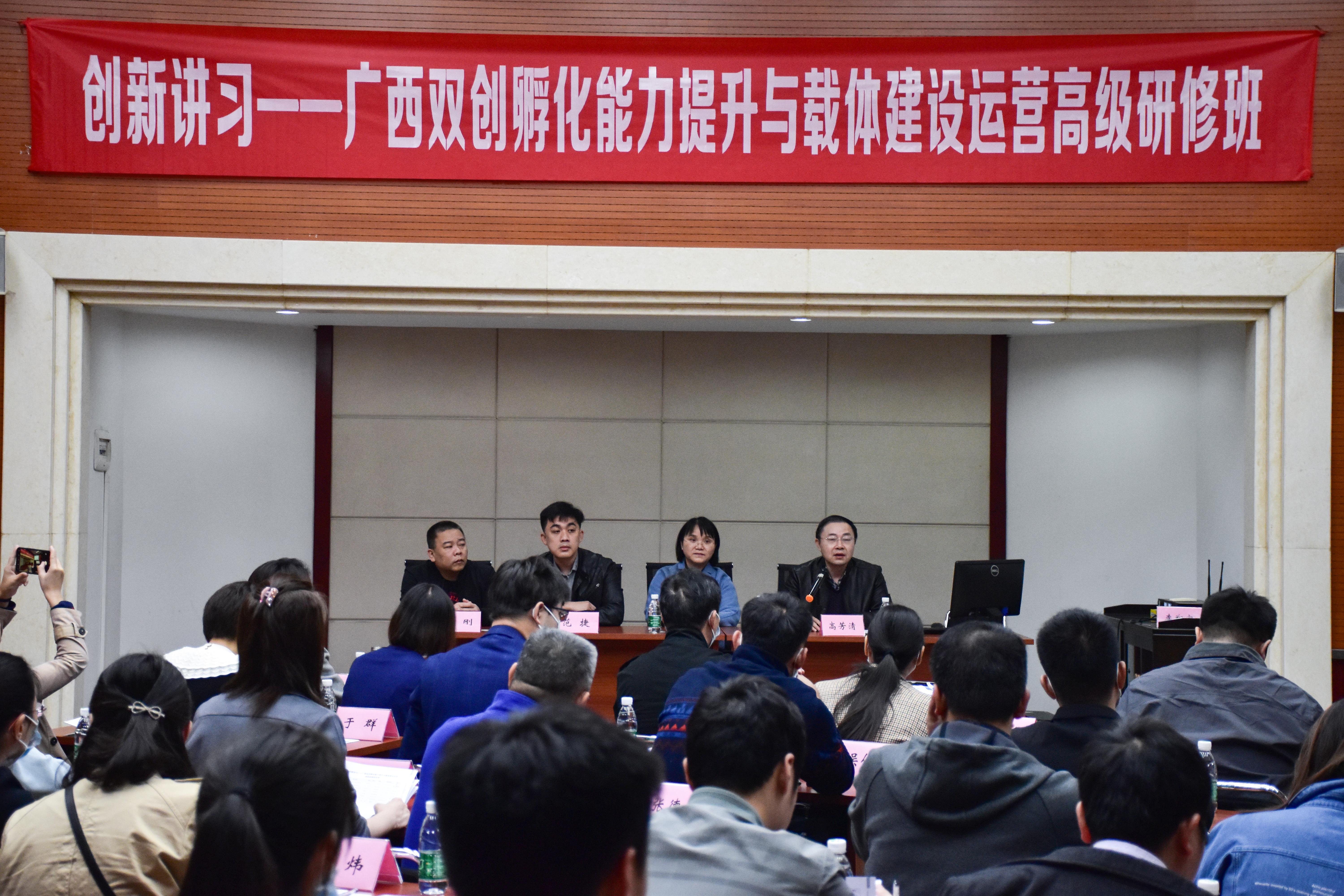 此次培训班由广西壮族自治区科技厅主办,广西科学活动中心和万象城娱乐awc线路力学与工程学院承办。为提升广西创业孵化载体的管理水平,不断提高服务科技型中小企业的能力,广西科技厅在万象城娱乐awc线路九里校区举办了“创新讲习——广西双创孵化能力提升与载体建设运营高级研修班”,培训参加的单位和人员主要是广西壮族自治区政府科技部门、国有企业、民营企业、高等院校等有关企业孵化器公司、科技公司、大学孵化基地、大学管理人员、大学科技园、产业园区管委会、高新技术服务中心、创业服务中心、科技园、投资公司等单位的董事长、总经理、经理、运营部长、业务主管、财务主管、学院院长等人员。