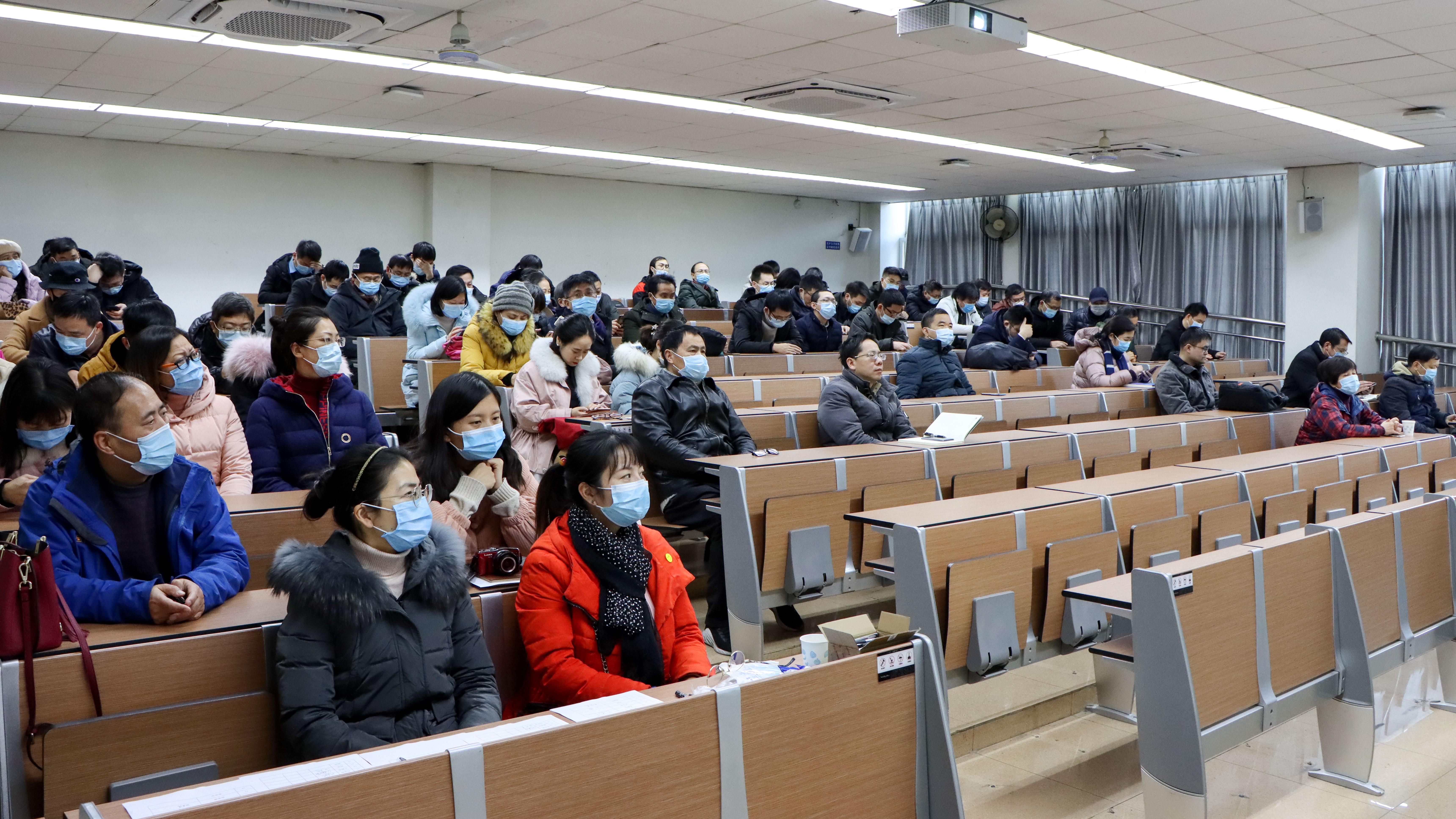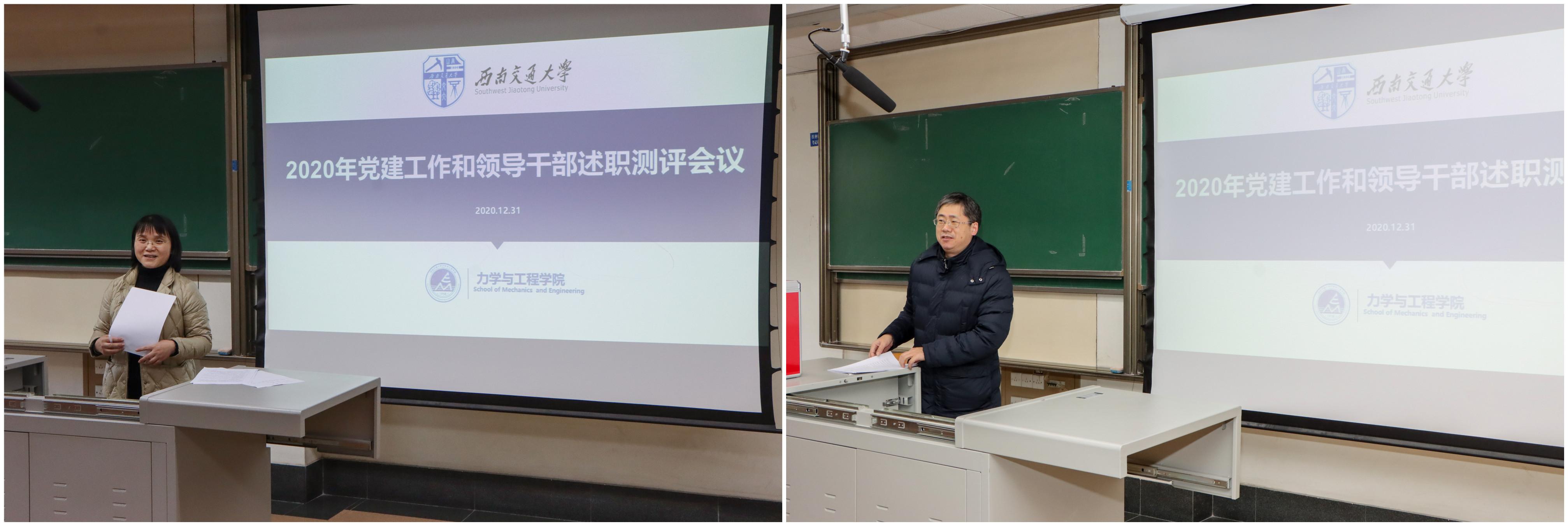 2020年12月31日下午,在九里校区逸夫馆4223教室,力学与工程学院召开了全体教职工大会,本次会议主要内容为学院党建满意度测评、中层领导班子和领导干部述职测评以及期末工作布置等。学校党委组织部组织员沈竹同志对述职考评环节进行了全程督导,会议由学院党委书记栗民主持。