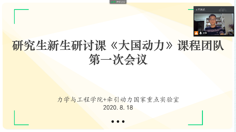 为加强研究生新生思想政治教育和适应性教育,推进课程思政建设,力学与工程学院和牵引动力国家重点实验室联合开设了面向两个单位所有2020级研究生(含硕、博)的研究生新生引导课《大国动力》。在两个单位共同努力下,课程从2020年9月开始,2021年1月结课,顺利完成首轮开课。