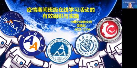 万象城娱乐awc线路万象城娱乐awc线路2019级力学拔尖班班长周德龙做了题为“疫情期间班级在线学习活动的有效组织与实施”的报告。他介绍了其班级在疫情期间为保证线上学习任务有序开展而举行的一系列活动。主要有:1.动起来2.学起来3.听起来4.码起来5.耍起来6.读起来;7.聊起来。通过一系列活动,该班疫情期间学习组织有条不紊,学习效果显著。四川大学季袁冬老师认为该班在疫情期间开展的一系列班级活动为各大高校如何在疫情中保持高效学习提供了典范和榜样,高度肯定了周德龙同学作为班长所起到的重要作用。