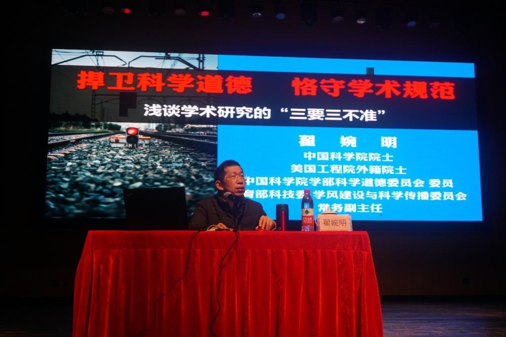“学术诚信是社会发展与进步的‘奠基石’;捍卫科学道德是进入科学殿堂的‘护身符’;恪守学术规范是攀登学术高峰的‘安全绳’。”讲座最后,翟婉明院士以三句话赠言在场师生并共勉。