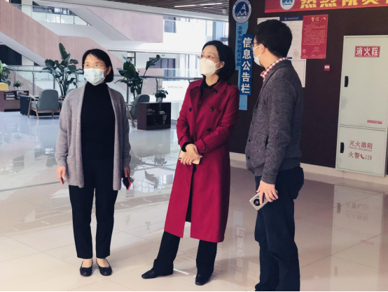 2022年4月8日上午,校党委副书记杨爱华来到万象城娱乐awc线路调研。学院党委书记栗民、副书记孔祥彬、专职组织员梁碧波、综合办公室主任刘青参加了调研。