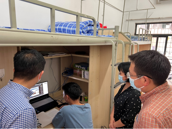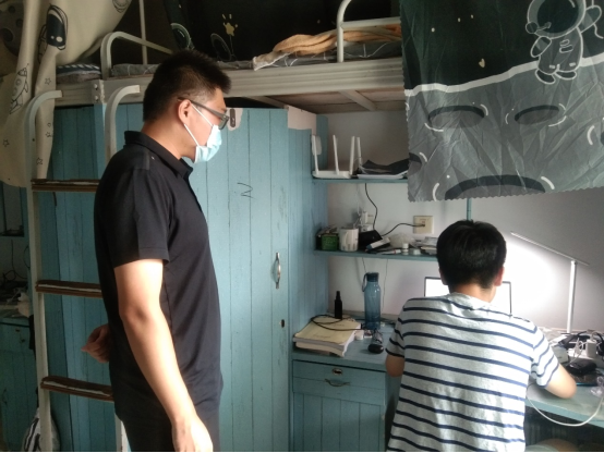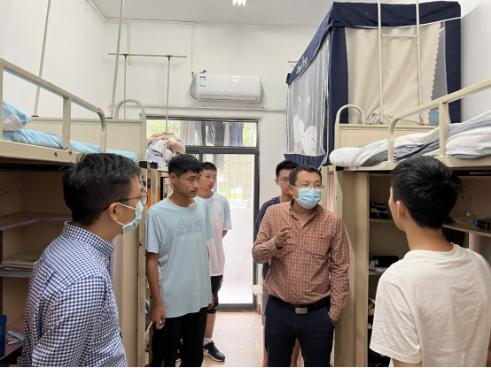 9月2日,学院党委书记栗民、执行院长李翔宇、党委副书记孔祥彬、新生辅导员古定翱以及各班班导生一行深入学院全部45间2022级新生宿舍,看望学生并查看学生上课情况,鼓励同学们学习战“疫”。