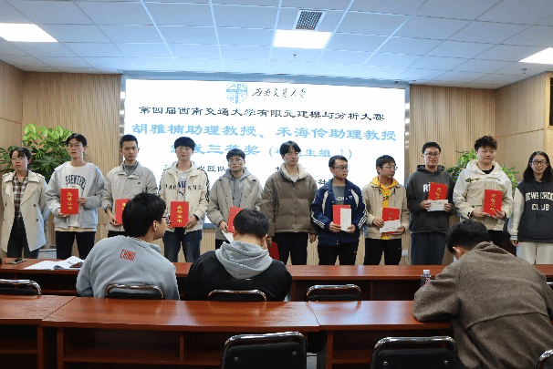 为提高万象城官网学生对有限元分析方法的理解与应用能力,在学校研究生院、教务处的大力支持下,万象城娱乐awc线路举办了第四届万象城娱乐awc线路建模与分析大赛(SWJTU_FEMAC4)。本次大赛旨在提升同学们的有限元建模与分析水平,并为学生提供技术交流、相互学习的平台。本次竞赛吸引了来自11个学院、287名同学、共111支队伍参赛(其中本科生组55名同学,共22支队伍;研究生组232名同学,共89支队伍)。经过竞赛组委会对参赛作品的筛选,最终73支队伍进入决赛答辩环节(其中本科生组15支队伍,研究生组58支队伍)。
