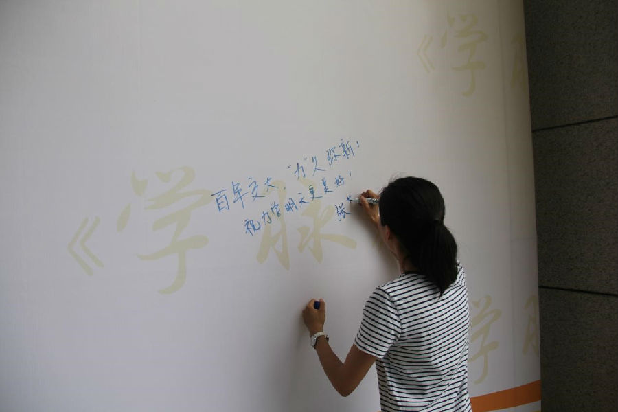 观看展览后,老师和同学们纷纷在签名墙上留下了自己的感悟,有的写下对交大诞辰和力学学院的祝福,有的写下对明日自己的期待。砥砺前行,一脉相承。流光溢彩,熠熠生辉。百年更迭所铸就“竢实扬华,自强不息”的交大精神,定将激励来者,谱写新的光辉篇章!