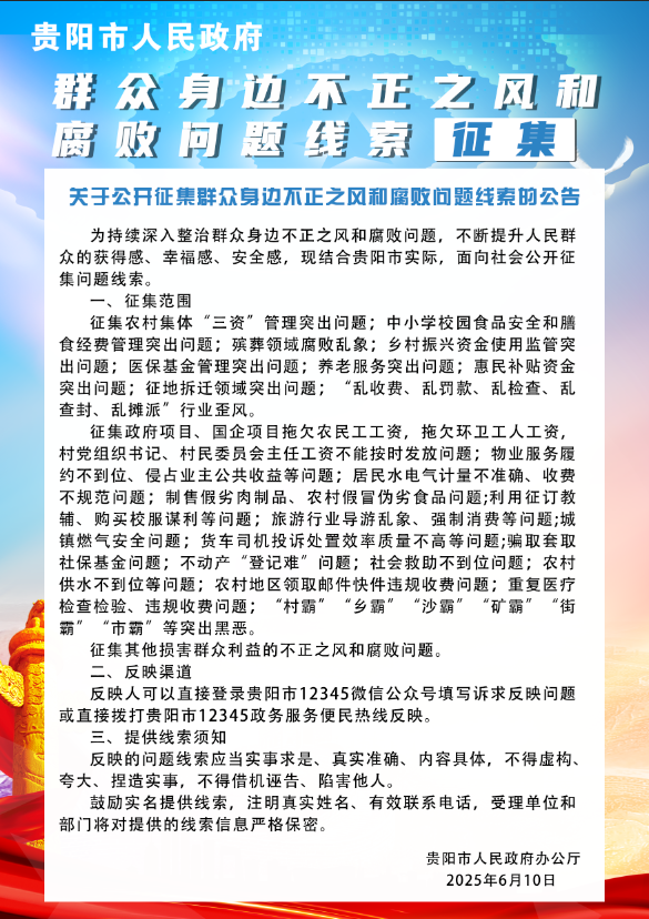 贵阳市人民政府关于开展征集群众身边不正之风和腐败问题线索的公告