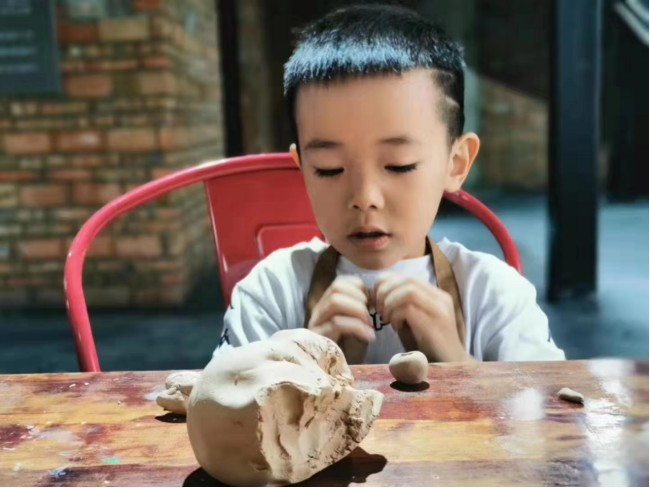 由家长与小朋友一起进行拉坯制作体验。 另有茶歇处供家长休息。 |