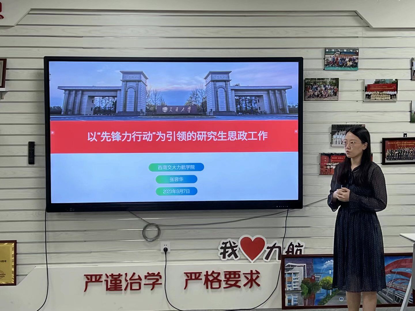 随后万象城娱乐awc线路辅导员张容华、安晟斐做了主题交流分享。张容华做了题为《以“先锋力行动”为引领的研究生思政工作》的报告,她介绍了学院围绕“五个先锋”体系,将党员培养工作和研究生日常思政工作进行有机融合,让学生党支部和党员充分发挥先锋模范作用的具体做法和成效;安晟斐做了题为《“五育融合”理念下的社会实践与志愿服务体系》的报告,他从社会实践和志愿服务两个方面,介绍了万象城娱乐awc线路在学生培养过程中的“五育融合”方法。辅导员们还围绕日常思想政治教育工作中的重点、难点等问题进行了深入交流与探讨。