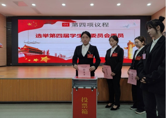 代表们投票选举第四届学生会主席团成员