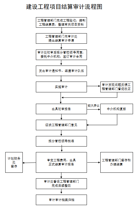 (三)计划财务处:负责及时将工程项目预算及调整预算明细以书面形式通知审计处;根据工程合同条款和审计意见,办理各项工程款项的审核和支付业务,按规定及时办理竣工决算。
