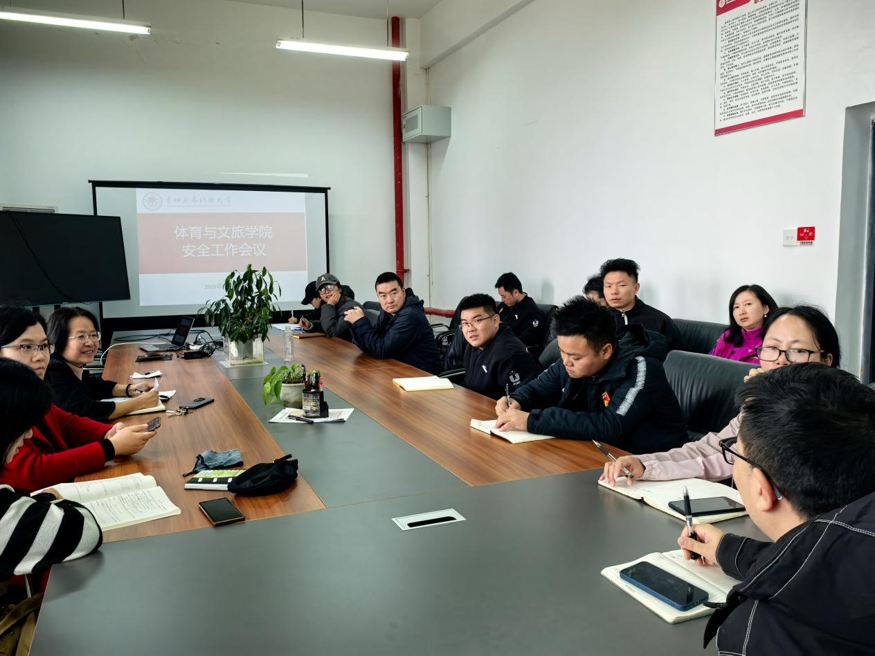 为深入贯彻落实学校安全工作部署,切实保障学院教学、科研、师生生活等各项工作平稳有序开展,10 月 23 日下午两点半,体育与文旅学院在学院会议室召开专题安全工作会议。学院党委书记欧阳宇星主持会议并传达学校安全工作精神,学院全体教职员工参加会议。