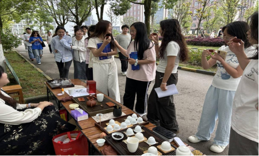 2025年6月9日,“探韵乌龙,共品茶香”活动在篮球场对面开展。茶烟袅袅,禅意悠悠,一注清泉正唤醒茶的醇厚,静候全校师生共赴茶香之约活动伊始,茶艺社的专业人员开始展示精湛的茶艺茶道。他们动作娴熟,有条不紊地冲泡着各类茶叶,从温杯、投茶到注水、出汤,每一个步骤都如行云流水般自然流畅,充分展现了中国传统茶艺的优雅与魅力。